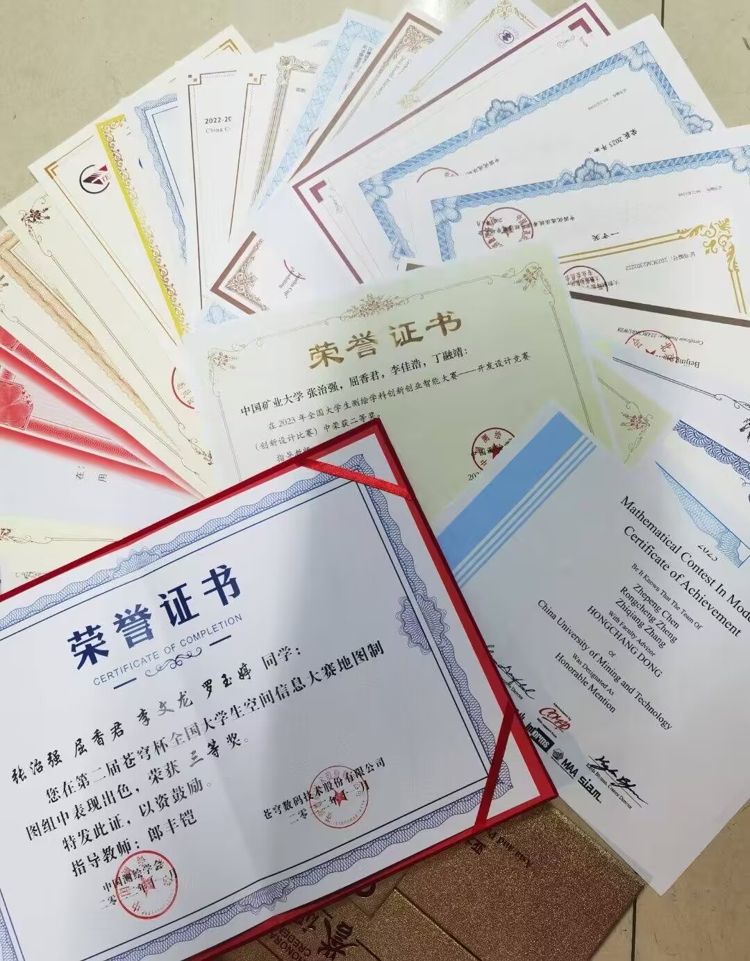 “纸上得来终觉浅,绝知此事要躬行。”在专业知识的理论学习之外,张治强还积极参加各种学科竞赛,提高个人的综合能力。他曾获得过多项奖项如第二届大学生低碳循环科技创新大赛特等奖、2023年全国大学生测绘学科创新创业智能大赛二等奖、国际大学生数学建模竞赛二等奖等二十余项奖项。在专业竞赛方面,张治强作为项目组长,在暑假期间与团队成员共同开发设计,撰写项目报告书,深挖系统的创新点,搭建系统模型,最后制作答辩PPT,最终不负所望获得了2023年测绘学科创新创业智能大赛创新设计组全国二等奖和第八届江苏省高校测绘地理信息创新创业大赛一等奖。在数学竞赛方面,张治强在大三利用课余时间开始学习数学建模知识,与团队成员多次练习和模拟并撰写论文,最终成果颇丰,获得了国际大学生数学建模竞赛二等奖、亚太地区数学建模竞赛一等奖、MathorCup高校数学建模挑战赛二等奖等六项数学建模类竞赛奖项。通过参加这些竞赛,不仅扩充了张治强的专业知识,更是对他专业素养、数学思维以及团队协作等综合能力的全面提升。