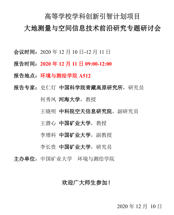 高等学校学科创新引智计划项目-大地测量与空间信息技术前沿研究专题研讨会