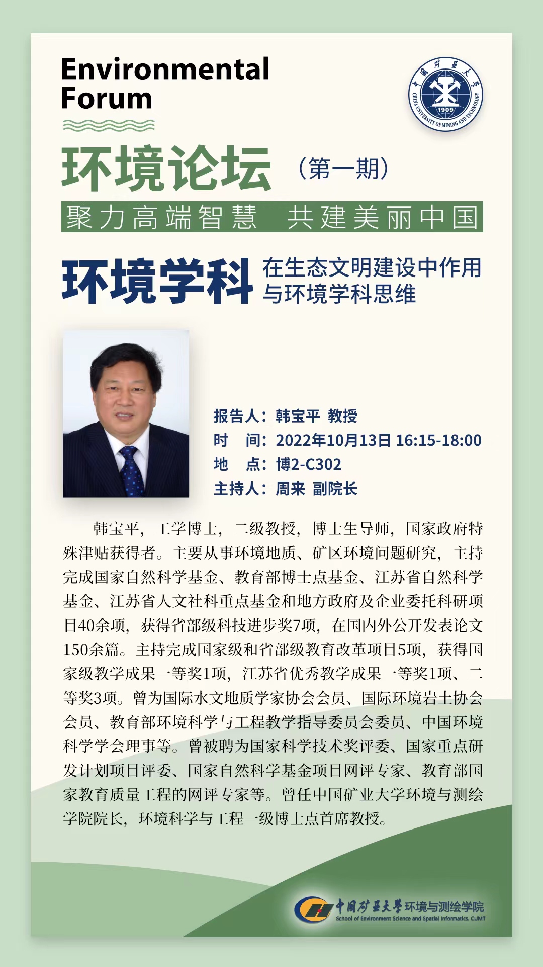 环境论坛(第一期)环境学科在生态文明建设中作用与环境学科思维