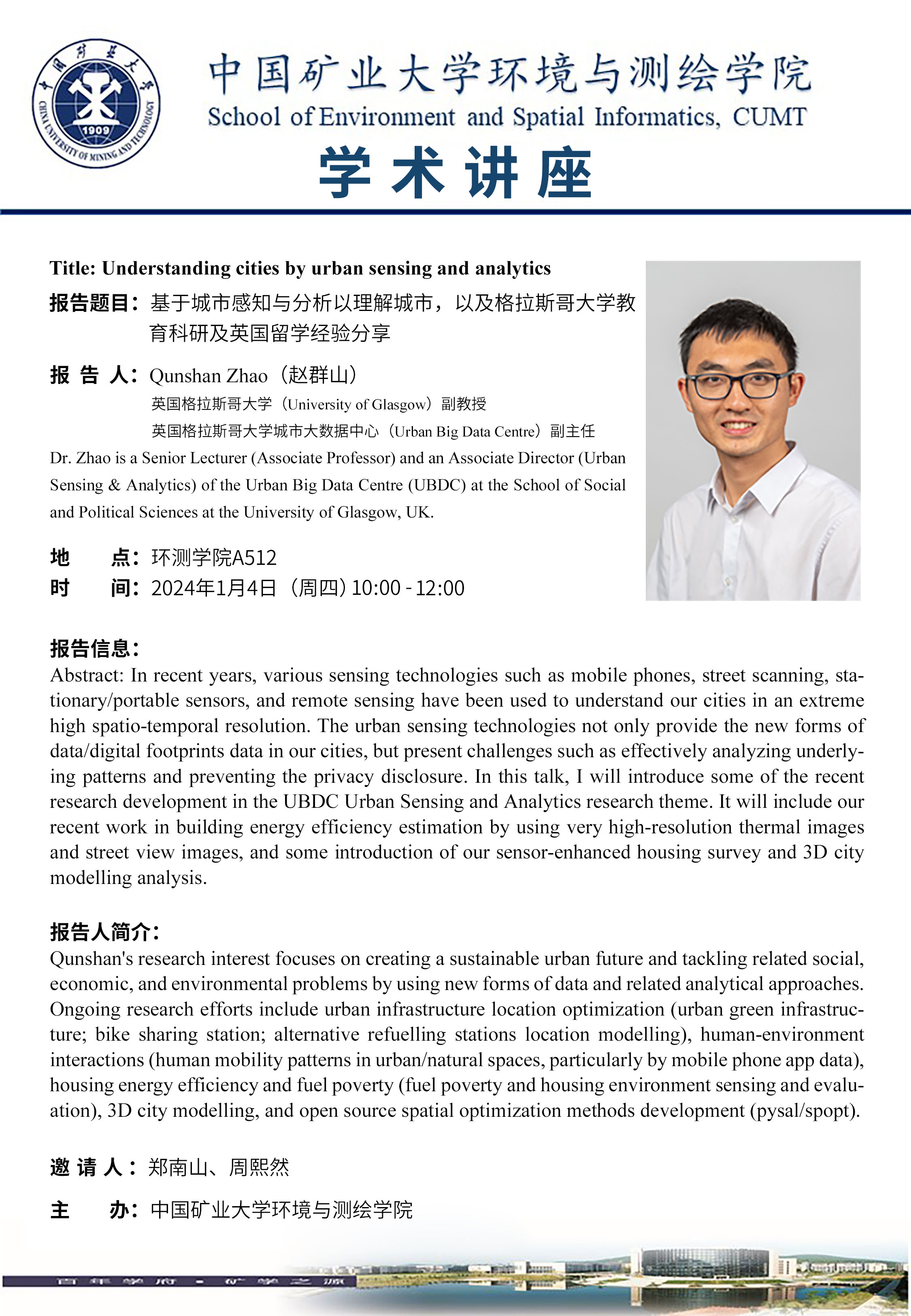基于城市感知与分析以理解城市,以及格拉斯哥大学教育科研及英国留学经验分享