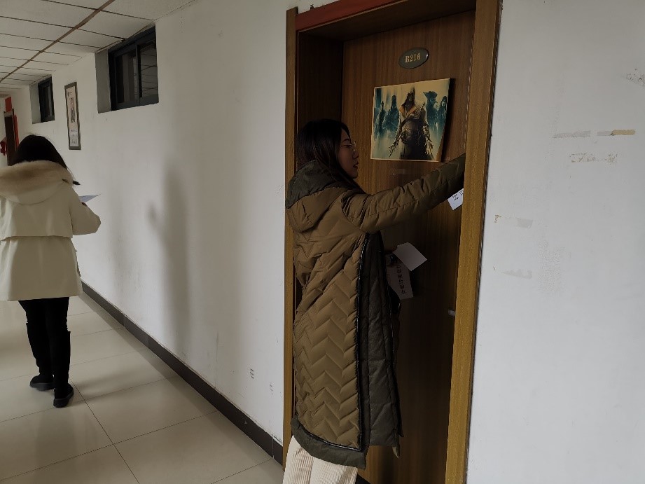 为进一步做好寒假期间学生宿舍安全稳定工作,1月18日下午,我院各年级辅导员老师前往学生宿舍区进行宿舍安全大检查,对全院学生宿舍安全进行逐一排查,检查宿舍门窗上锁情况并为离校学生宿舍张贴封条。