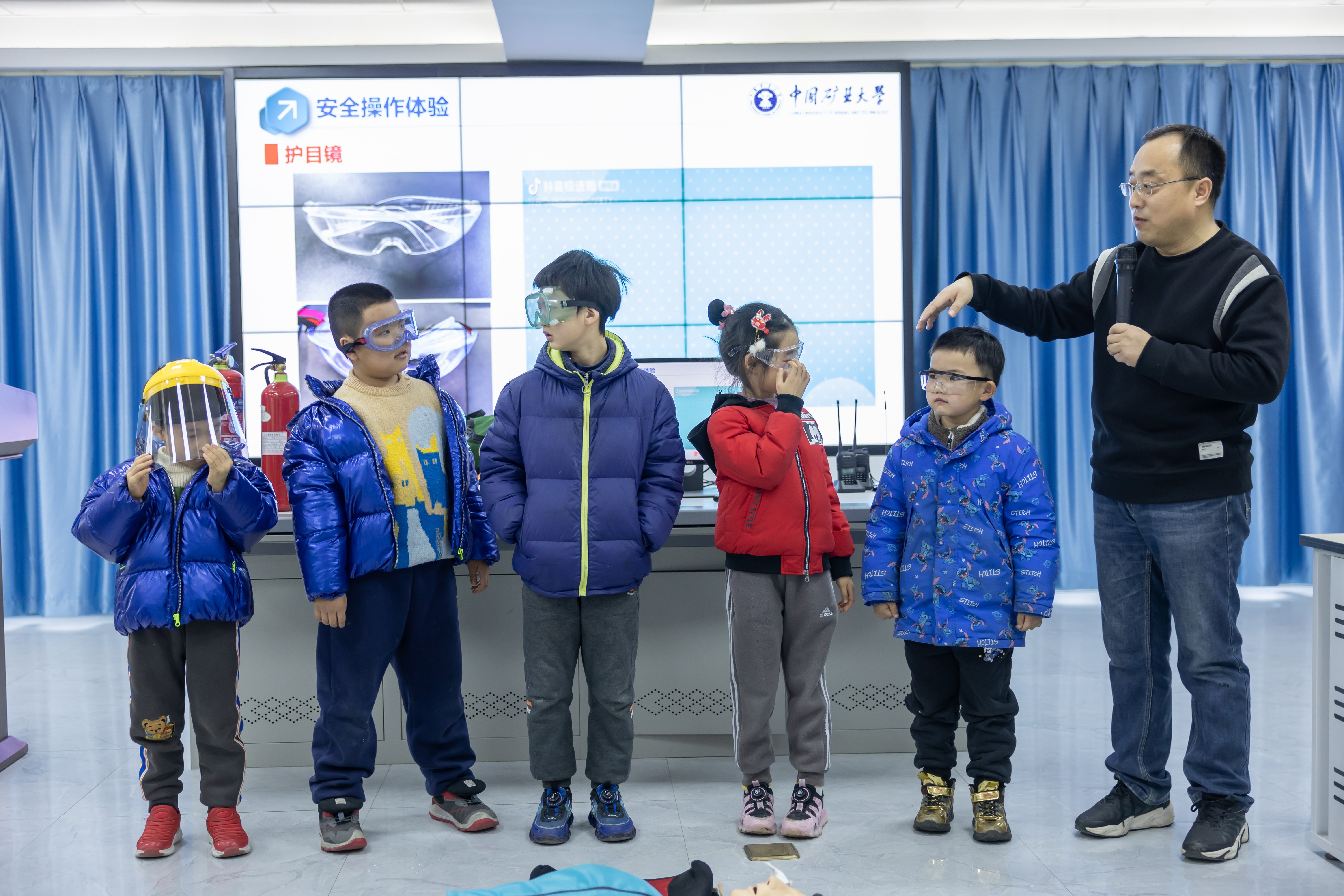 首先,实验中心副主任白向玉老师对各位同学的到来表示热烈欢迎,介绍了该活动的背景、意义和要求。随后,中国矿业大学白向玉、徐州市中心医院李薇、徐州市儿童医院李莹等老师围绕消防安全、个体防护、绳子打结、心肺复苏等内容为孩子们进行了讲解、互动和交流,并分组进行了灭火器和心肺复苏实操。最后,白向玉老师对开放活动进行了总结,并邀请部分学生上台进行互动交流。整个活动现场气氛热烈,孩子们踊跃发言,积极参与互动体验活动,收获了安全环保知识。